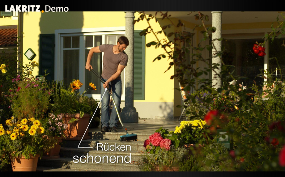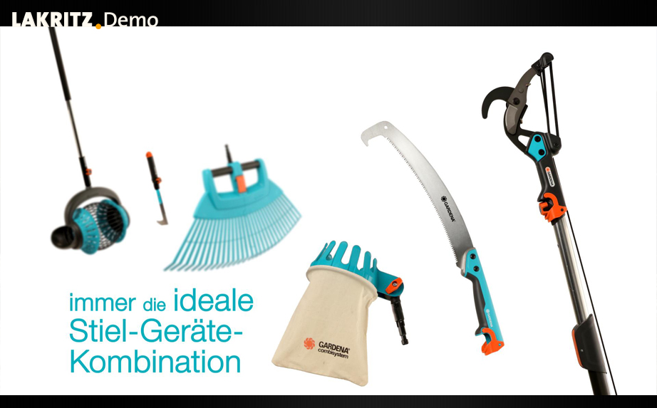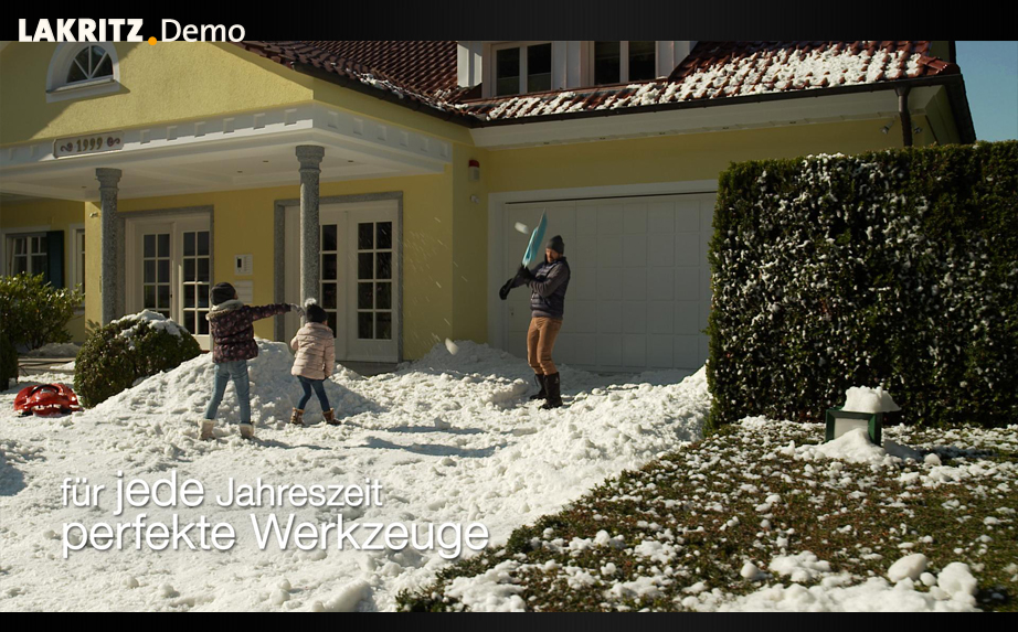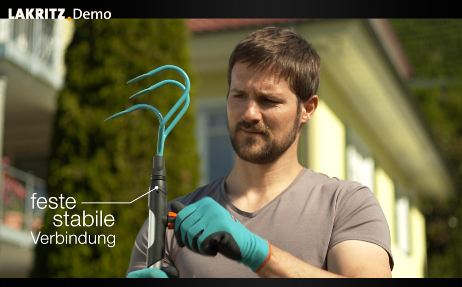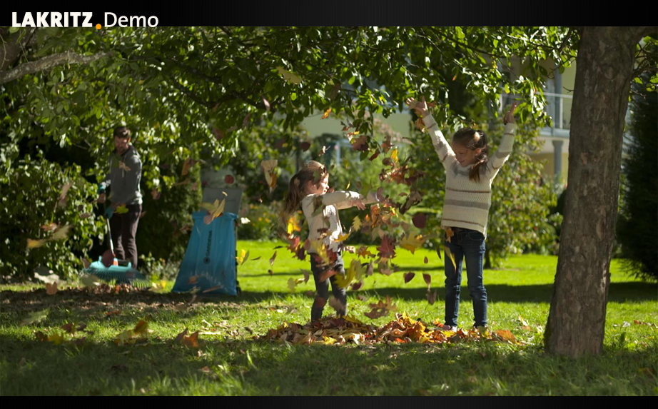 Die einzelnen Anwendungen werden mit Spielszenen von fröhlichen Kindern unterschnitten, die zu jeder Jahreszeit im Garten spielen. Dies verleiht der Arbeit mit dem GARDENA combisystem eine spielerische Leichtigkeit.