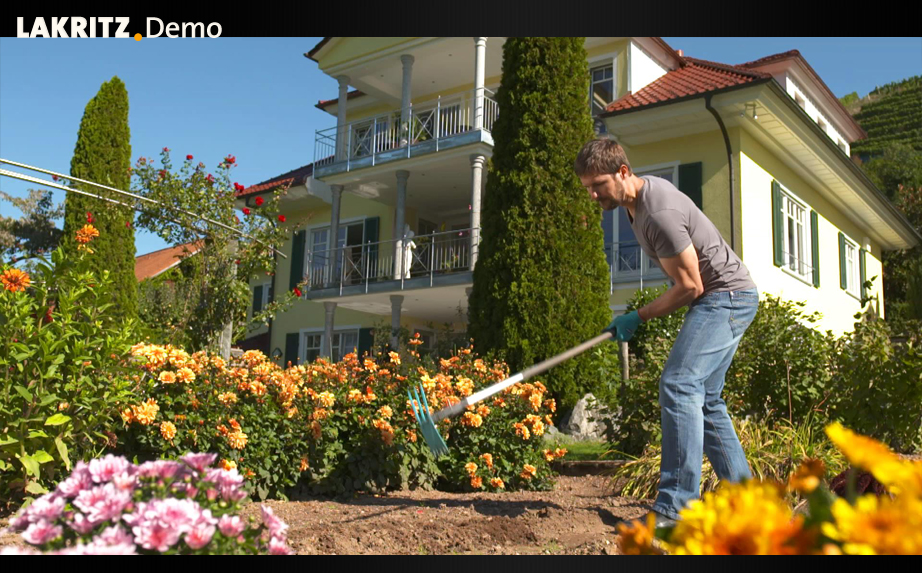 Zu Beginn tauchen wir aus der Vogelperspektive in die Gartenwelt ein und beobachten einen Gartenliebhaber, der im Frühjahr, Sommer, Herbst und Winter mit dem combisystem arbeitet.