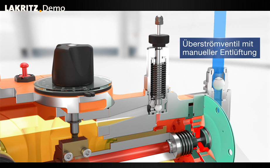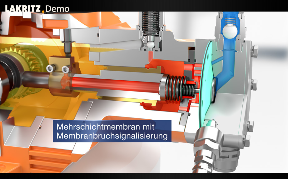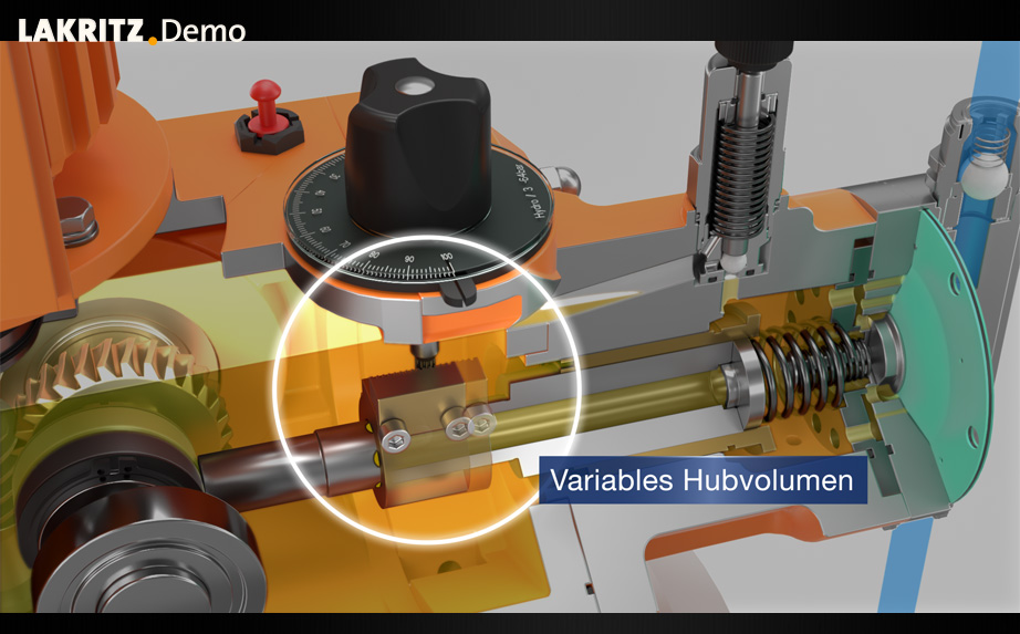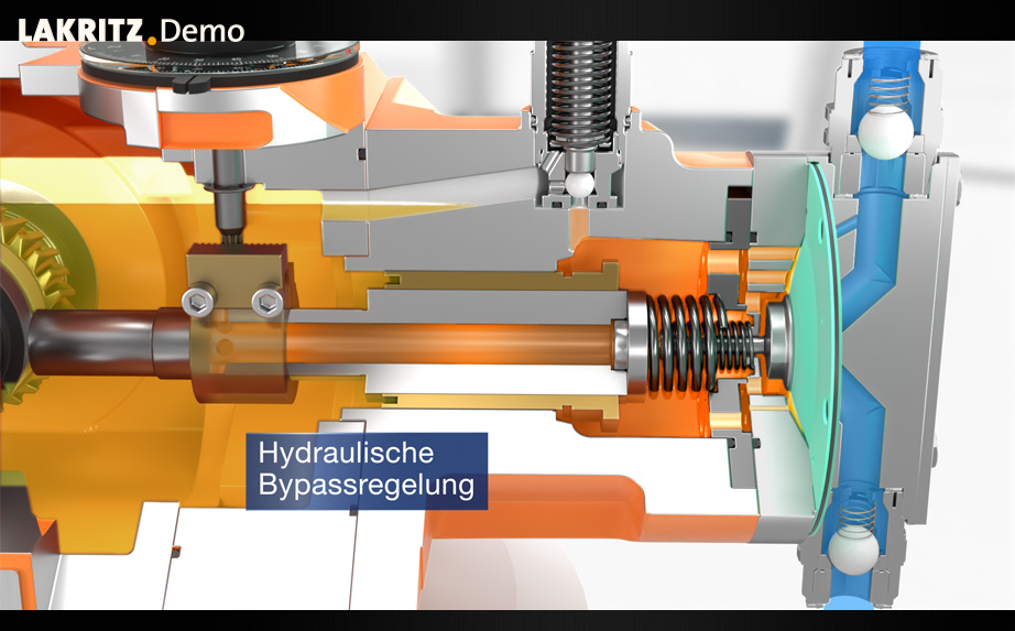 Das Innenleben der Pumpe wird mit unterschiedlichen Schnitten durch die Pumpe sichtbar gemacht und die technischen Features können so verständlich dargestellt werden.